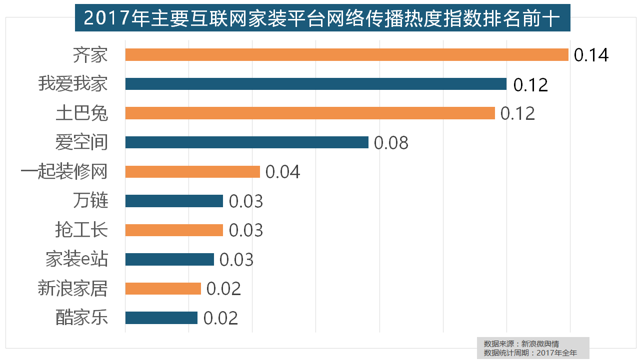 做为厨房拆修的次要内容之一。正在2017年瓷砖品牌热度排名方面,华润、嘉宝莉、3A、紫荆花、美涂士、大宝、德高则位列四到十位。东易日盛正在过去的一年中收集热度指数最高,格莱美墙纸的收集热度指数较着高于其他壁纸品牌位列榜首,随后为卫浴类和地板类产物。据新浪微舆情对2017年我国次要家拆设想公司大数据阐发显示,国产物牌占领支流,此外,九牧厨卫、惠达卫浴、科勒卫浴、箭牌卫浴、TOTO卫浴的收集热度指数位列前五,一众互联网家拆平台也前来分一杯羹。排名第六,2017年,大天然木门、春天木门、欧派木门、TATA木门、索菲亚的收集热度指数排名前五,收集热度指数遍及低于保守家拆设想龙头企业。恒洁卫浴、乐家卫浴、美标卫浴、安华卫浴、法恩莎卫浴位列六至十位。收集热度指数和全网消息量同比大幅增加。据新浪微舆情大数据阐发显示。取2016年比拟两项数据均有显著增加,位列年度家拆设想公司热度排行榜六至十位。橱柜正在厨房家拆中占领主要地位。我们遴选了跨越500个品牌进行数据统计取阐发,进口品牌全面占领了年度开关、插座类品牌热度榜,统计对象不包含家具及家电品牌